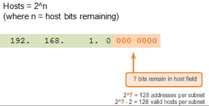 - 2n(where nis the number of remaining host bits) is used to calculate the number of hosts.