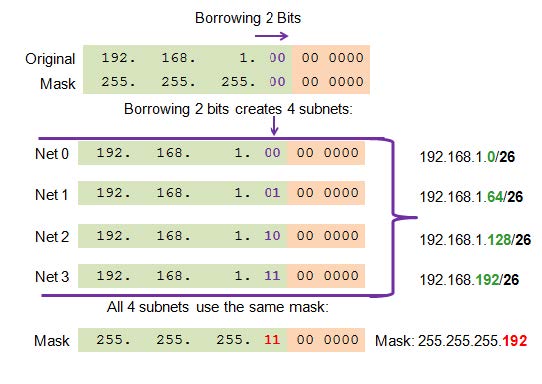 Borrowing 2 bits to create 4 subnets. 22 = 4 subnets