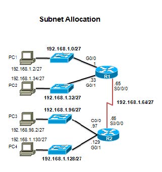 | Each LANs will be assigned a subnet with /27 mask. |
