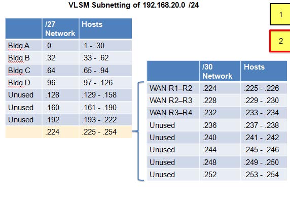 | The variable-length subnet mask (VLSM) or subnetting a subnet provides more efficient use of addresses. |